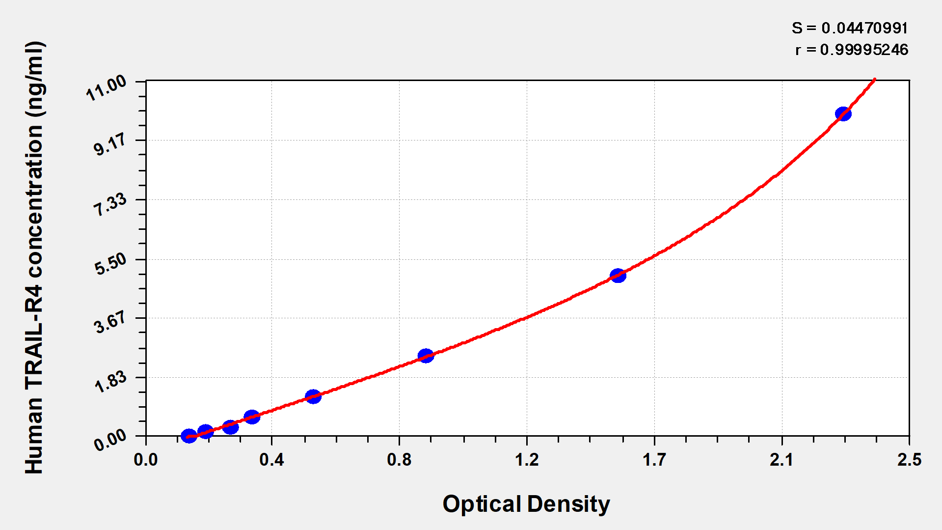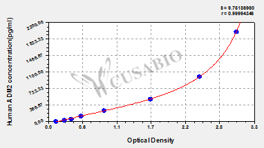 通過線性范圍來計(jì)算出實(shí)際的檢測樣本值,定量試劑盒標(biāo)準(zhǔn)曲線的相關(guān)系數(shù)R大于0.99。以CSB-E07270h(人脂聯(lián)素(ADP)ELISA Kit)為例的標(biāo)準(zhǔn)曲線。