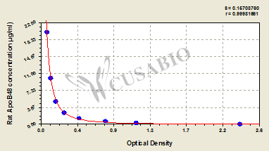 通過線性范圍來計算出實際的檢測樣本值,定量試劑盒標準曲線的相關(guān)系數(shù)R大于0.99。以CSB-E07270h(人脂聯(lián)素(ADP)ELISA Kit)為例的標準曲線。