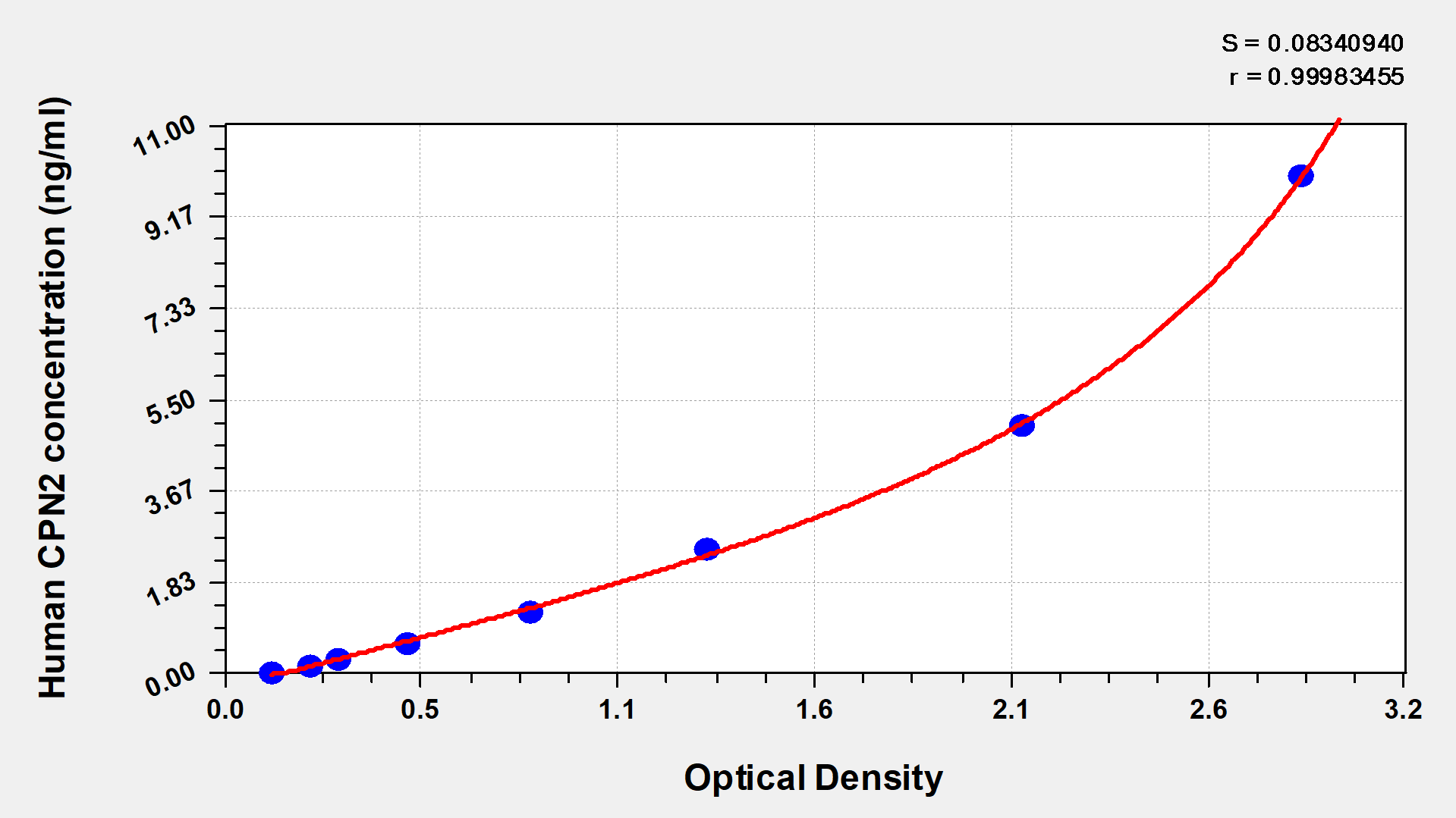 通過線性范圍來計算出實際的檢測樣本值,定量試劑盒標(biāo)準(zhǔn)曲線的相關(guān)系數(shù)R大于0.99。以CSB-E07270h(人脂聯(lián)素(ADP)ELISA Kit)為例的標(biāo)準(zhǔn)曲線。