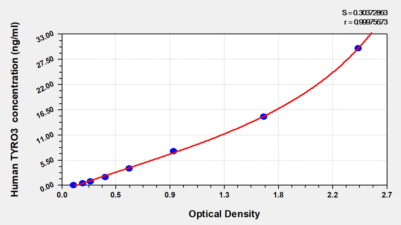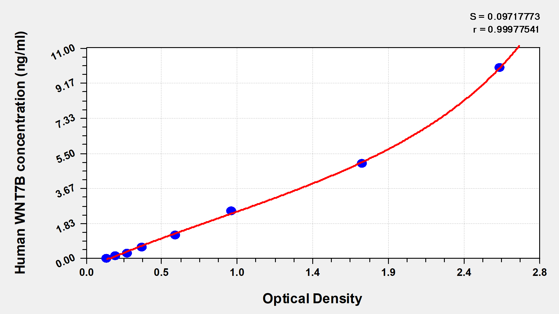 通過線性范圍來計(jì)算出實(shí)際的檢測(cè)樣本值,定量試劑盒標(biāo)準(zhǔn)曲線的相關(guān)系數(shù)R大于0.99。以CSB-E07270h(人脂聯(lián)素(ADP)ELISA Kit)為例的標(biāo)準(zhǔn)曲線。