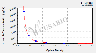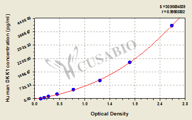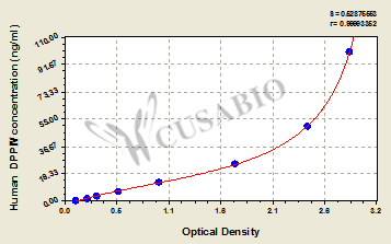 通過(guò)線性范圍來(lái)計(jì)算出實(shí)際的檢測(cè)樣本值,定量試劑盒標(biāo)準(zhǔn)曲線的相關(guān)系數(shù)R大于0.99。以CSB-E07270h(人脂聯(lián)素(ADP)ELISA Kit)為例的標(biāo)準(zhǔn)曲線。