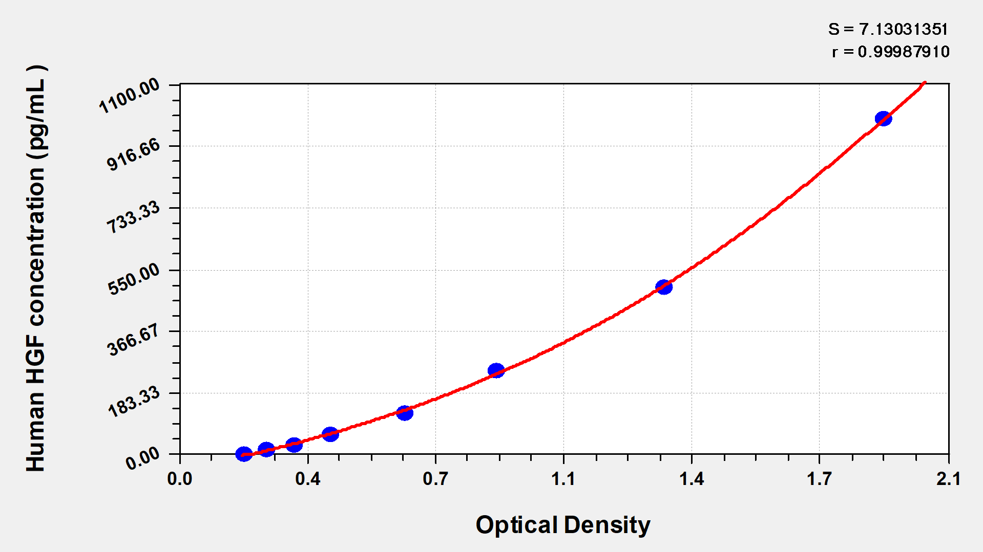 通過(guò)線性范圍來(lái)計(jì)算出實(shí)際的檢測(cè)樣本值,定量試劑盒標(biāo)準(zhǔn)曲線的相關(guān)系數(shù)R大于0.99。以CSB-E07270h(人脂聯(lián)素(ADP)ELISA Kit)為例的標(biāo)準(zhǔn)曲線。