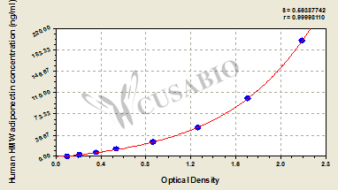 通過線性范圍來計(jì)算出實(shí)際的檢測樣本值,定量試劑盒標(biāo)準(zhǔn)曲線的相關(guān)系數(shù)R大于0.99。以CSB-E07270h(人脂聯(lián)素(ADP)ELISA Kit)為例的標(biāo)準(zhǔn)曲線。