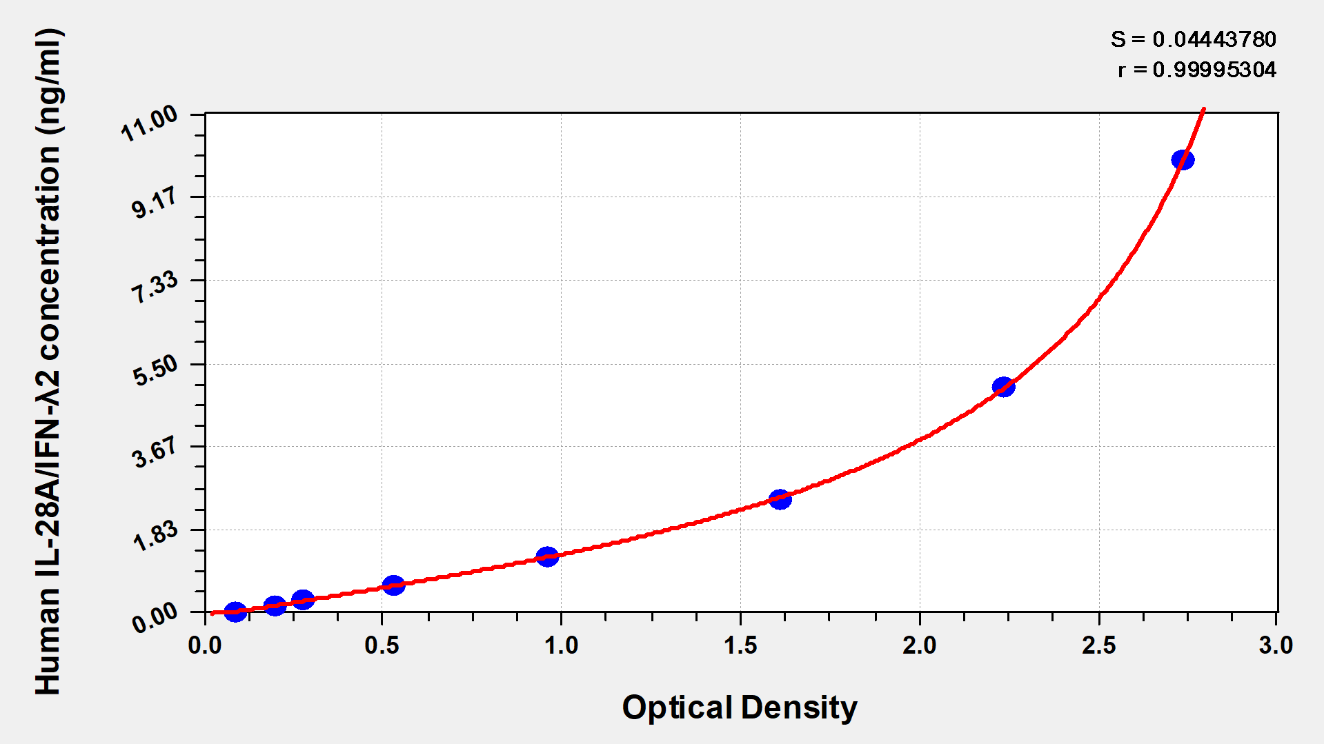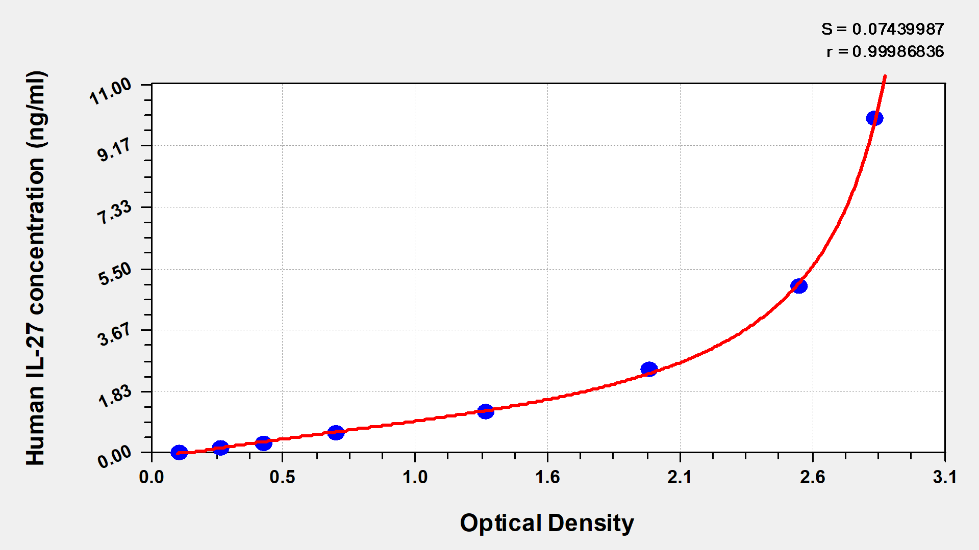 通過線性范圍來計(jì)算出實(shí)際的檢測樣本值,定量試劑盒標(biāo)準(zhǔn)曲線的相關(guān)系數(shù)R大于0.99。以CSB-E07270h(人脂聯(lián)素(ADP)ELISA Kit)為例的標(biāo)準(zhǔn)曲線。