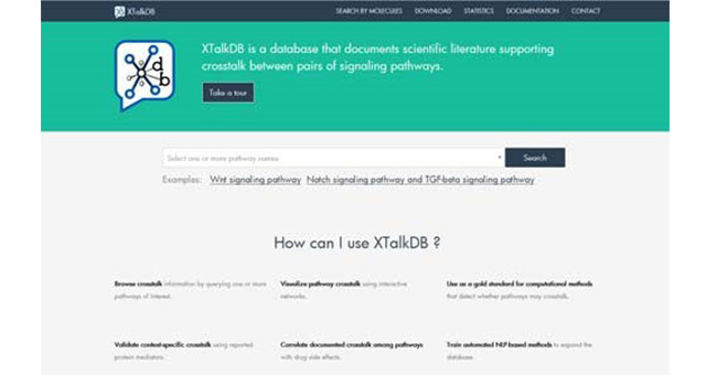 XTalkDB(http://www.xtalkdb.org/home)是研究信號通路間相互作用的數(shù)據(jù)庫 。眾所周知,信號通路及通路間的相關(guān)作用的分析是系統(tǒng)生物學(xué)研究的基石。未開發(fā)XTalkDB 之前,幾乎沒有數(shù)據(jù)庫明確地匯總特定信號通路及其互相影響的通路。XTalkDB從1600多種期 刊中提取出了650條信號通路,并對他們之間的相互作用進(jìn)行了分析。