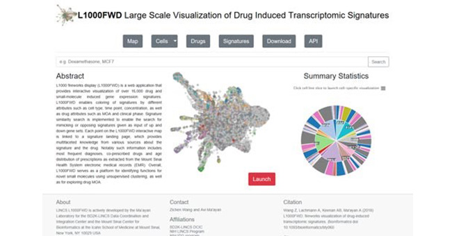 L1000FWD(http://amp.pharm.mssm.edu/L1000FWD/)是一個(gè)網(wǎng)絡(luò)應(yīng)用程序,擁有 超過16,000種藥物和小分子誘導(dǎo)的基因表達(dá)特征。另外L1000FWD可以通過不同的屬性(如細(xì) 胞類型、時(shí)間點(diǎn)、濃度)以及藥物屬性(如MOA和臨床階段)對特征進(jìn)行著色,進(jìn)一步實(shí)現(xiàn)直 觀化與可視化。