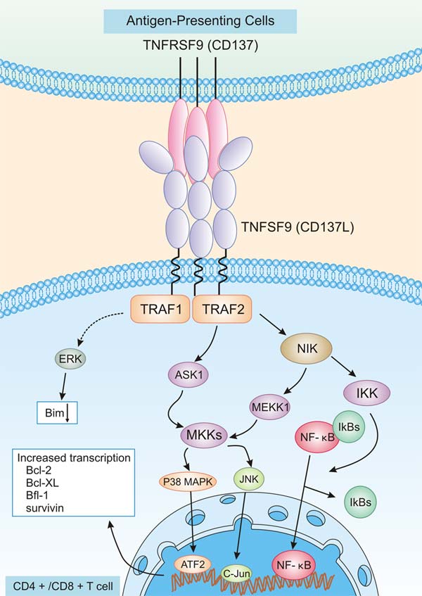 [14] Shao, Zhe, and Herbert Schwarz. "CD137 ligand, a member of the tumor necrosis factor family, regulates immune responses via reverse signal transduction." Journal of leukocyte biology 89.1 (2011): 21-29.