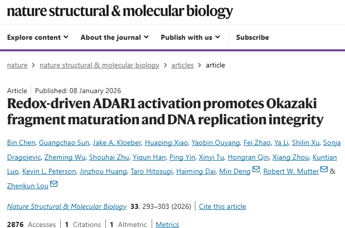 [6]Redox-driven ADAR1 activation promotes Okazaki fragment maturation and DNA replication integrity.Nat Struct Mol Biol,2026 Feb