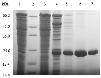 泳道4-7:不同梯度洗脫下來(lái)的目的蛋白