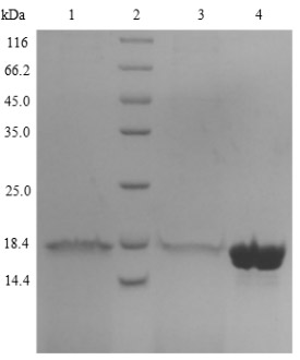 難點(diǎn):36氨基酸以上,4kDa,分子量非常小,而且這個(gè)客戶要求切除標(biāo)簽,在分子量本身就很小的情況下切除標(biāo)簽是非常有難度的,但我們經(jīng)過(guò)一系列處理后成功將標(biāo)簽切除,且WB用標(biāo)簽抗體檢測(cè)目的蛋白中不含蛋白標(biāo)簽,最終得到了高純度、小分子量的無(wú)標(biāo)簽蛋白。
